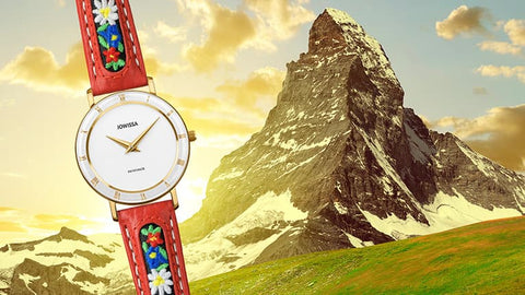 The Roma Ethno collection combines traditional Swiss aesthetics with modern watch design. Each model in this unique watch line is inspired by the nature and culture of the Swiss Alps - visible in the finely embroidered leather straps with edelweiss and other alpine flowers. Whether delicate white, bold red or calming blue - the color palette expresses alpine emotions. With classic dials, Roman numerals and elegant cases in various sizes (from 26mm to 36mm), these watches are not only stylish accessories, but also an expression of a sense of home and craftsmanship. The flat stainless steel cases make them comfortable to wear, while the Swiss Made quality and 3 ATM water resistance guarantee suitability for everyday use. Roma Ethno is more than just a watch - it is a declaration of love to Switzerland.