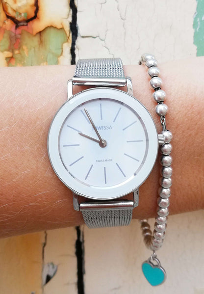 Waterproof, Quartz movement, Interchangeable strap, Swiss made, and Analogue wristwatch