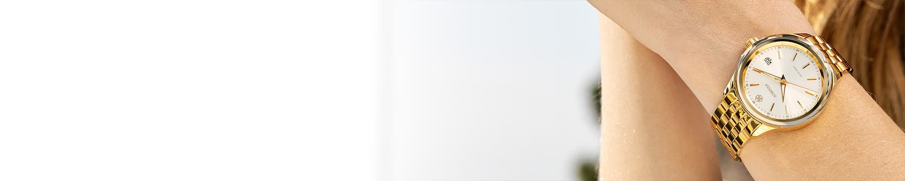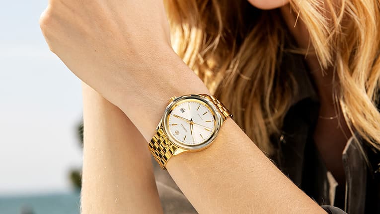 Bring shine and brilliance to the hour with Tiro. This ladies’ watch is designed to keep you on time and looking fabulous. The 38 mm case is the perfect setting for extra detail such as glittering rhinestones on the sunray dial. The faceted glass also attracts the light to make a sparkling statement on your wrist. Three hands are highlighted in golden detail while a date window makes a neat appearance. This Swiss-made timepiece is styled with a polished gold bracelet or a high-shine patent leather strap in strong colours such as rich chocolate, sleek black and vibrant shades of red. Dial and strap variations also allow you to wear the look you love. Whether it is about bold contrast or a more co-ordinated vibe, Tiro defines a women’s watch that exudes glamour and high-end style.