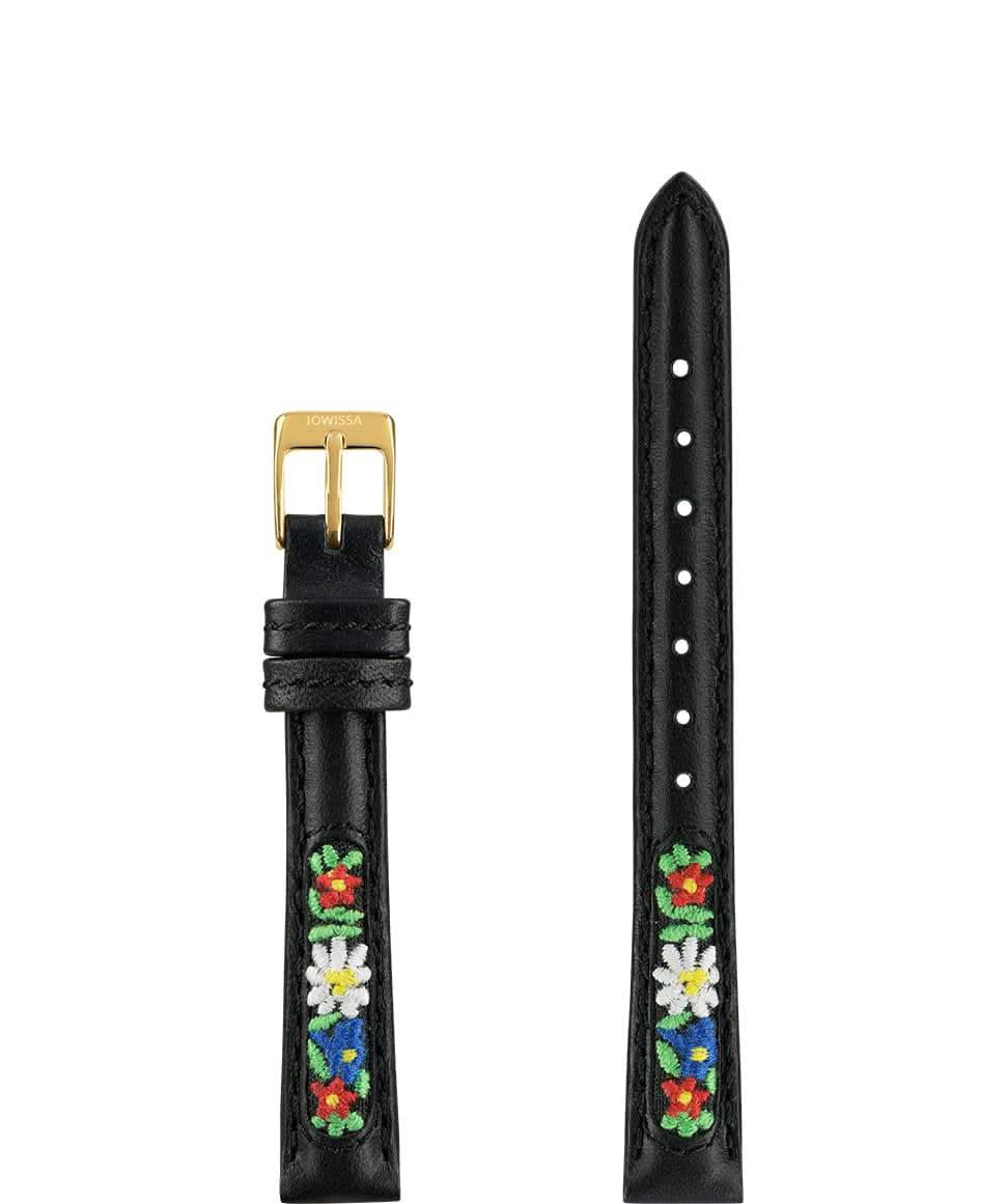 Leather Watch Band with Swiss Flower Embroidery E3.1376.S