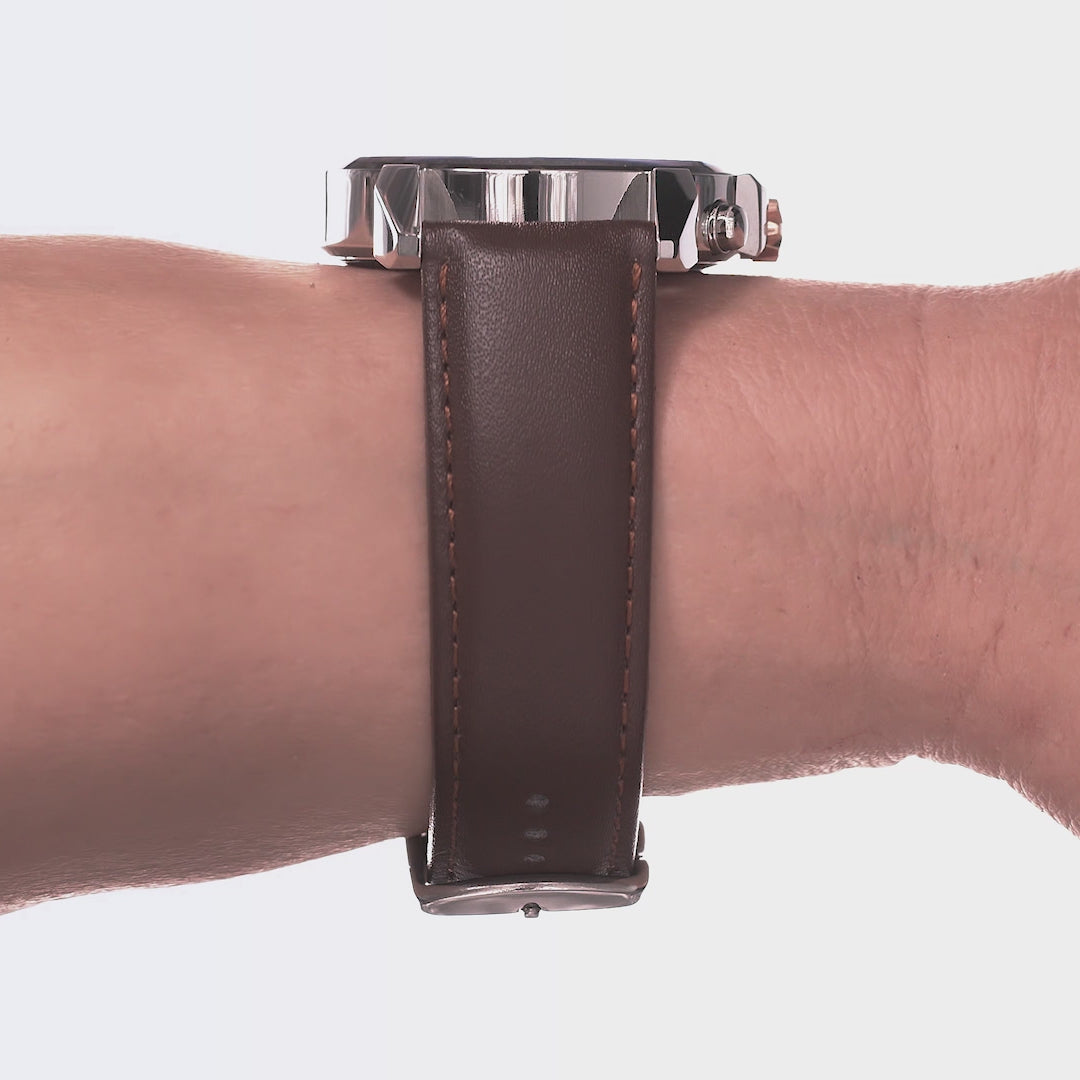 Leather Chronograph Men's Watch Blue Sapphire Face Brown Band 42mm