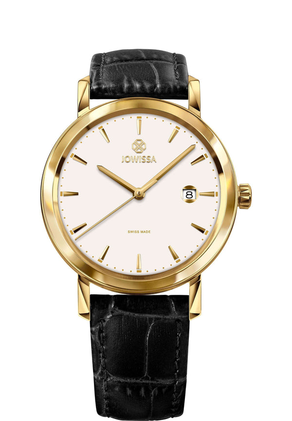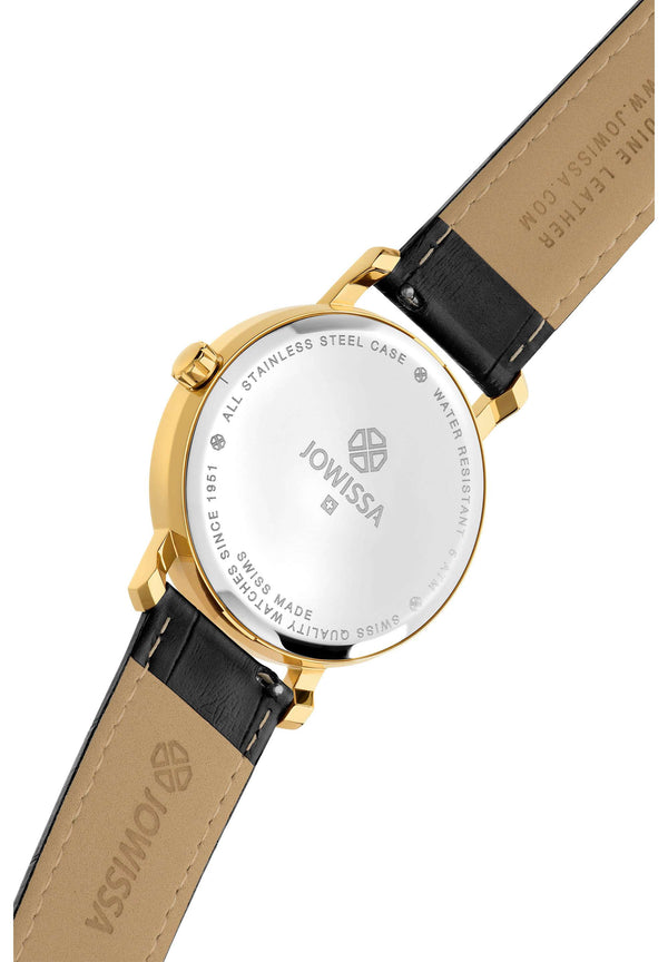 Waterproof, Quartz movement, Date display, Interchangeable strap, Swiss made, and Analogue wristwatch