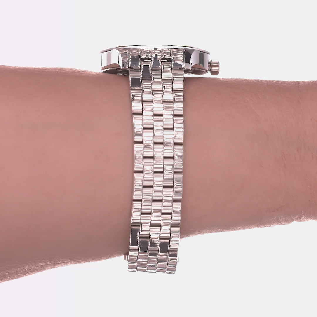 Silver Black Swiss Quartz Wristwatch with Elegant Steel Bracelet 38mm
