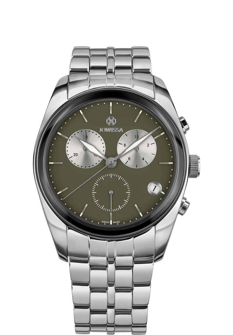 Waterproof, Tachymeter, Quartz movement, Date display, Interchangeable strap, Analogue wristwatch, Swiss made, Chronograph, Luminous markers, and Luminous hands