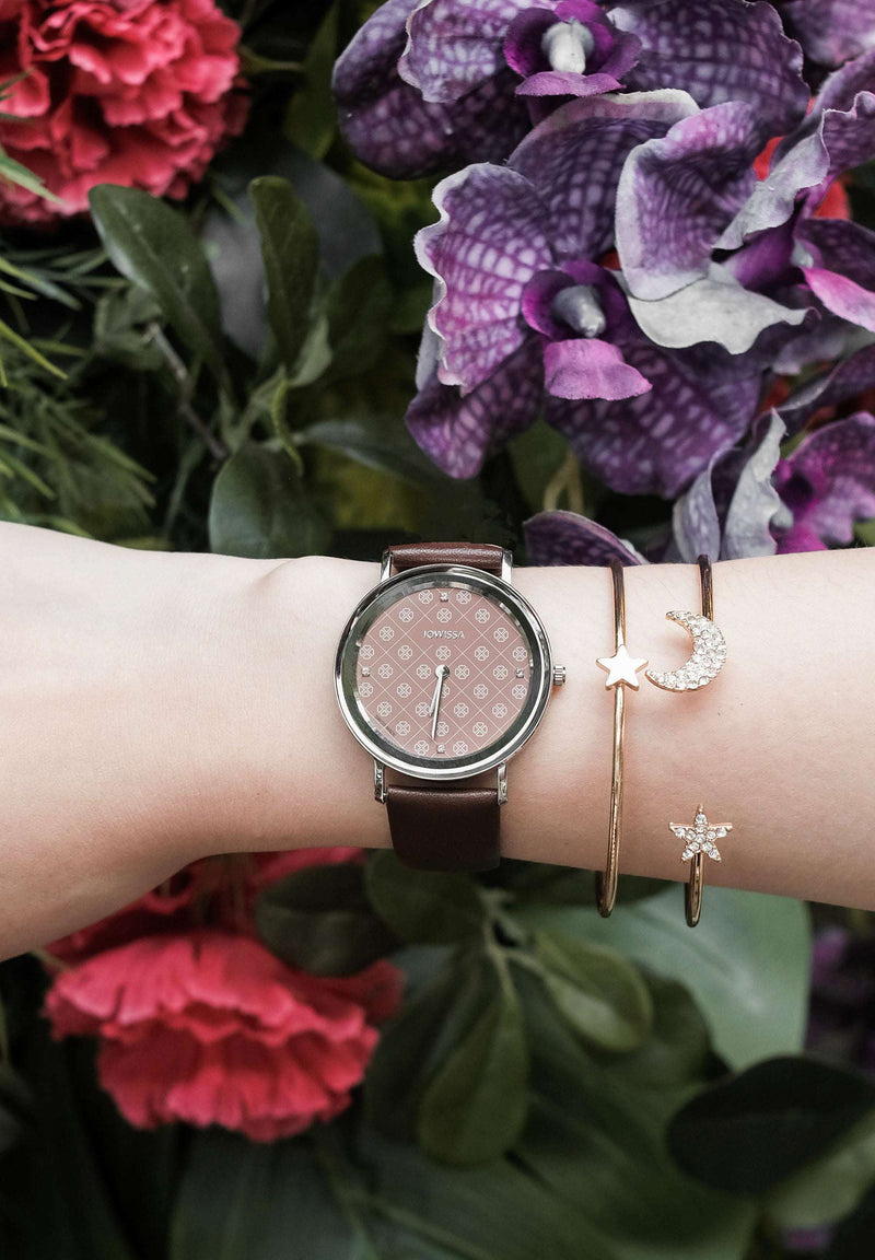 Waterproof, Quartz movement, Interchangeable strap, Swiss made, and Analogue wristwatch