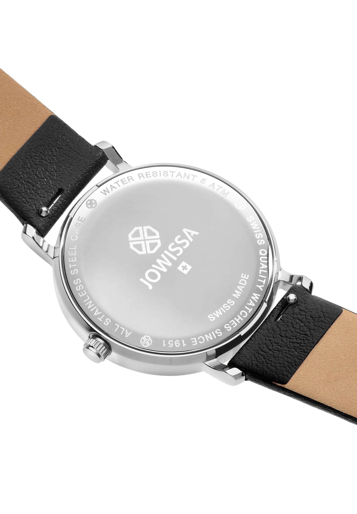Waterproof, Quartz movement, Interchangeable strap, Swiss made, and Analogue wristwatch