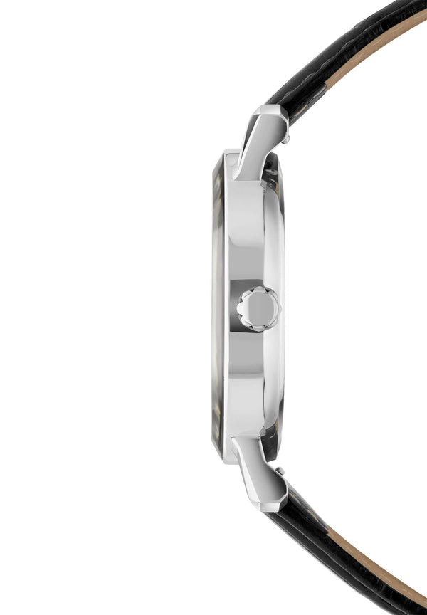Waterproof, Quartz movement, Date display, Interchangeable strap, Moon phase display, Moon phase clock, Swiss made, and Analogue wristwatch