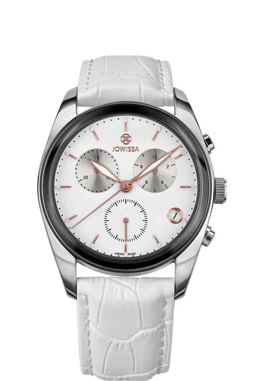 A diamond-cut sapphire glass edge with metallization enhances the light-reflecting display. The intricate process of working on a glass edge in a sapphire crystal, which is a strong and scratch-resistant material, truly adds a luxury feature to each one of our Lux designs. In addition, sporty design influences are apparent in the iconic chronograph styling. The series also includes stainless steel wristbands or unisex versions with luxurious, interchangeable leather straps in different colors to allow you to play around with the appearance. Above all, high-quality materials and polished design work ensure each watch feels super comfortable to wear and looks striking – a fashionable timepiece ideal for everyday wear and special occasions.