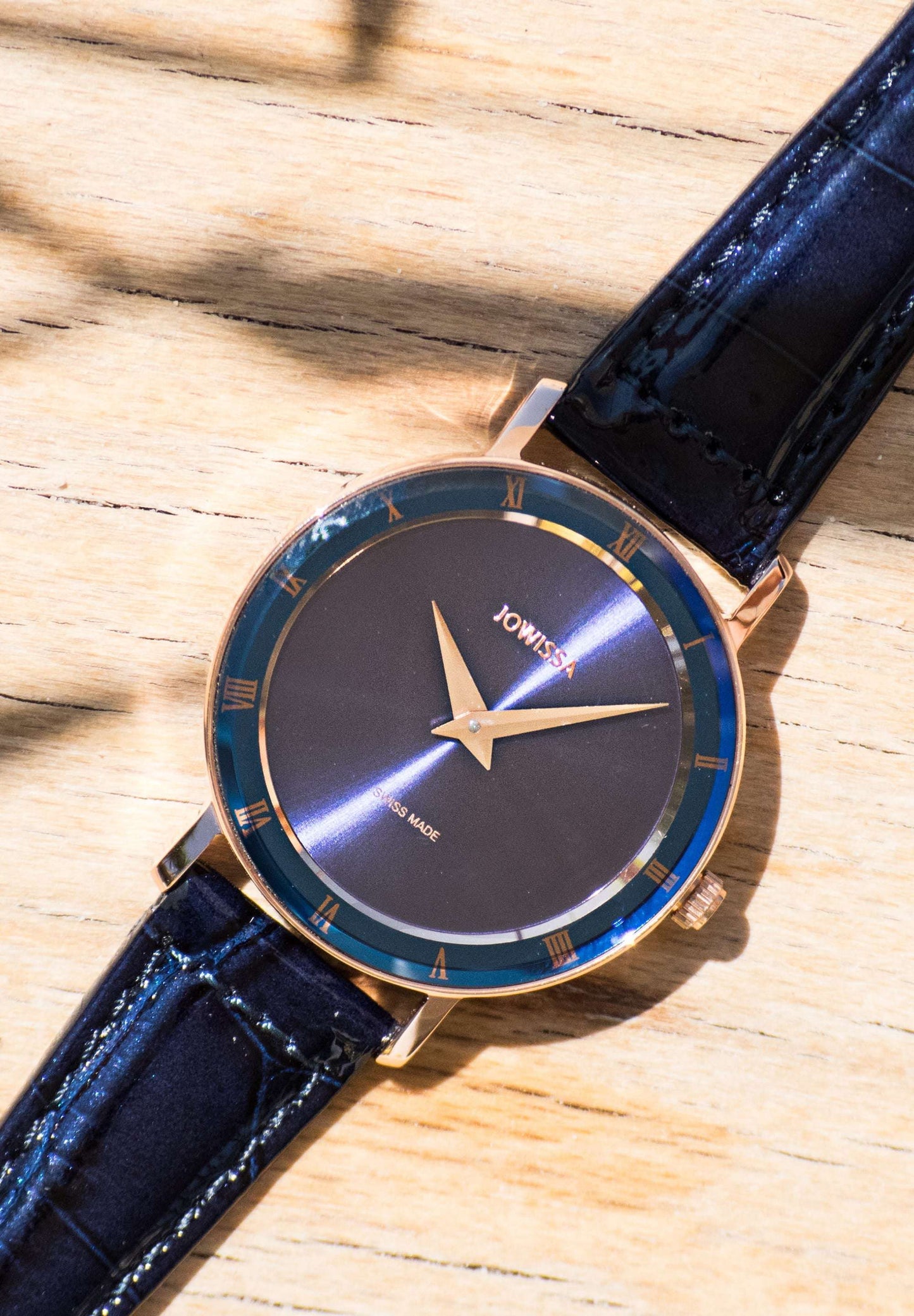 Waterproof, Interchangeable strap, Quartz movement, Swiss made, and Analogue wristwatch