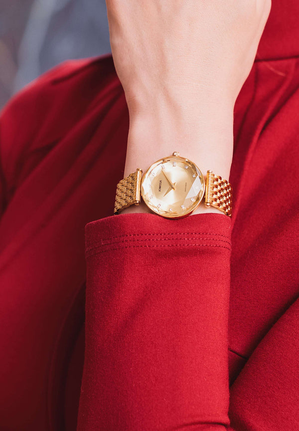 The Facet Brilliant is a captivating collection of fashion watches for women. Intricate details and design elements are inspired by the eternal beauty of the round brilliant cut diamond. These ladies’ watches are a celebration of vibrant colour and sparkle. The round 30mm case holds the expertly cut crystal that catches the light with each movement of your wrist. Stunning dials take centre stage in shades of Champagne, dark Blue, rich Purple, classic Green, and elegant Rose Gold. Rhinestones as hour markers are a glamorous addition to each dial. Whether you love a luxurious high-gloss leather watch or a jewellery-inspired bracelet watch, this stunning collection delivers the best of both designs to suit your individual style. Hand-assembled in Switzerland at a very affordable price, Facet Brilliant celebrates the style of designer watches for everyday wear. If you appreciate good value, great quality and striking design, the Facet Brilliant collection is made for you.