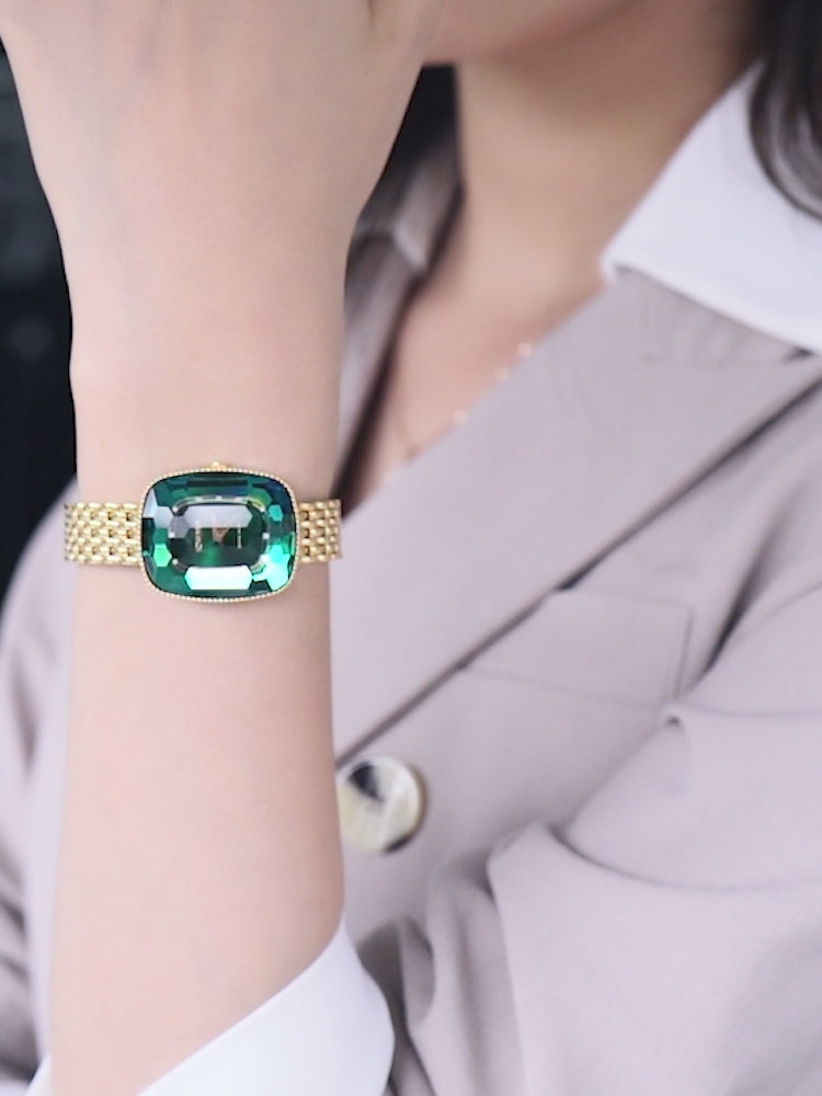 Green Face Gold Women's Watch and Milanese Bracelet 26mm Cushion Shape