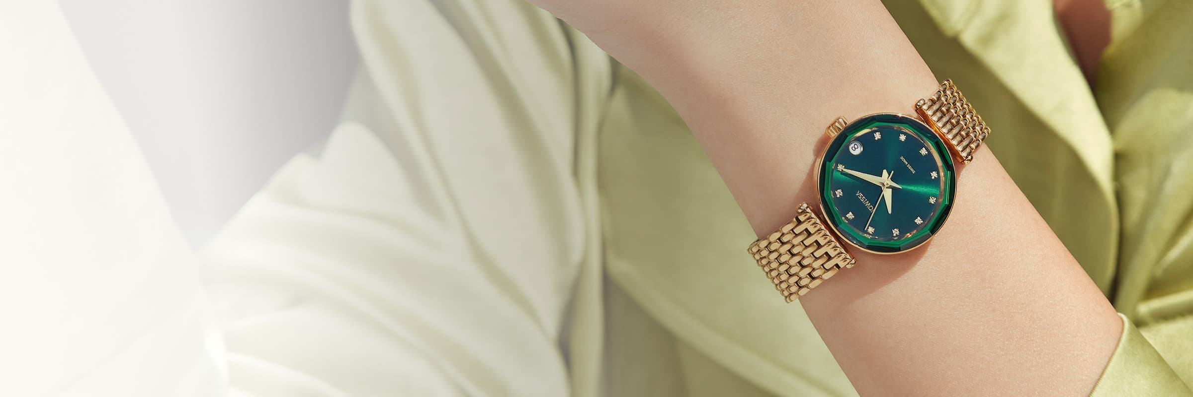 Safira is our stunning collection of women’s automatic watches that combine fashionable elegance with the craftsmanship of watchmaking. The 30.5mm case sits beautifully on your wrist and is made to be admired. The Jowissa signature love of color, glamor and confidence is evident in each design. Jewel-like dials shimmer with sparkling applied diamond indices and a scratch-resistant sapphire crystal reflects the light beautifully. Shiny bracelets or high-gloss leather straps enhance each watch. Modern and sophisticated, Safira ladies watches also celebrate the art and engineering of a Swiss mechanical movement with automatic winding. You can admire the movement, which is visible at the back of the watch. The sapphire glass back cover showcases the gears and springs in intricate detail. Swiss Made and hand-assembled, Safira watches are high-quality timepieces but also affordable. If you are looking for something special and different, these watches with joyful jewel tones and real diamond sparkle will uplift your spirits. Overall, feminine and fashionable ladies watch with bold, edgy design that showcases the automatic movement. Choose your favorite Safira watch for work, the weekend or the perfect gift