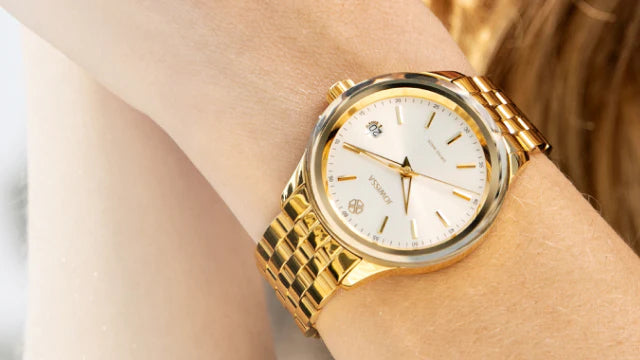 Bring shine and brilliance to the hour with Tiro. This ladies’ watch is designed to keep you on time and looking fabulous. The 38 mm case is the perfect setting for extra detail such as glittering rhinestones on the sunray dial. The faceted glass also attracts the light to make a sparkling statement on your wrist. Three hands are highlighted in golden detail while a date window makes a neat appearance. This Swiss-made timepiece is styled with a polished gold bracelet or a high-shine patent leather strap in strong colours such as rich chocolate, sleek black and vibrant shades of red. Dial and strap variations also allow you to wear the look you love. Whether it is about bold contrast or a more co-ordinated vibe, Tiro defines a women’s watch that exudes glamour and high-end style.