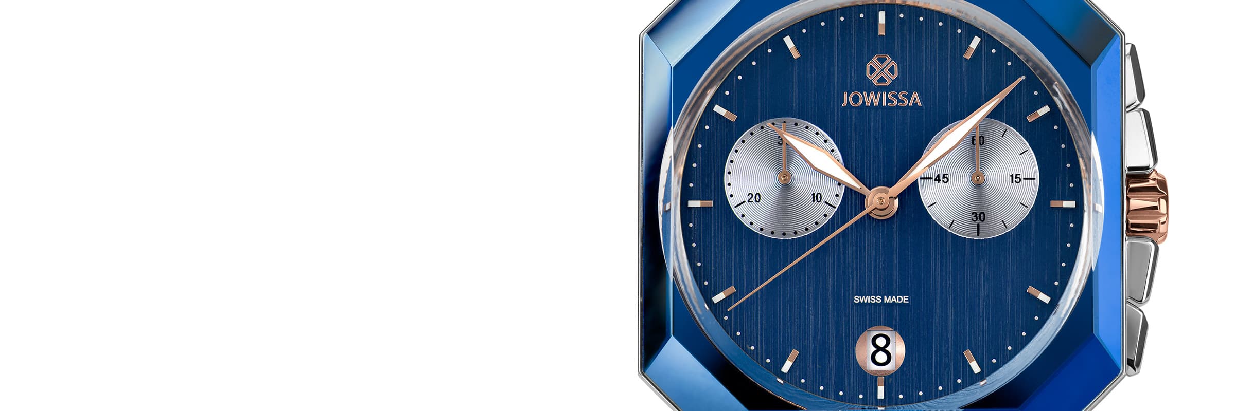 Experimente la sofisticación de la nueva colección Octa 6 de Jowissa, un homenaje a la cautivadora forma octogonal. Estos lujosos relojes cronógrafo para hombre son un testimonio de artesanía impecable. El cristal facetado recubierto de zafiro con un elemento de metalización coloreado añade un toque hipnotizador. Cada reloj cuenta con una robusta caja de acero inoxidable con exquisitos detalles en oro rosa, que realzan su encanto. Impulsada por movimientos suizos Ronda de alta precisión y diseñada para el uso diario con una resistencia al agua de 10 ATM, la colección Octa 6 combina a la perfección estilo y funcionalidad. Tanto si prefiere la elegancia atemporal de una correa de piel como la modernidad de una correa de acero inoxidable, la colección Octa 6 ofrece el cronógrafo suizo perfecto para todo caballero exigente.