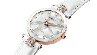 Laissez-vous séduire par les reflets changeants de nos montres en nacre. Chaque cadran est taillé dans de la nacre véritable, garantissant que votre montre possède un motif naturel absolument unique. Jowissa sublime cette matière noble en la protégeant sous un verre en cristal facetté. L'association de la nacre irisée et des facettes taillées comme des diamants crée un jeu de lumière spectaculaire au poignet. Disponibles avec des finitions dorées ou argentées, ces garde-temps Swiss Made apportent une touche de poésie et de luxe naturel à votre style quotidien.