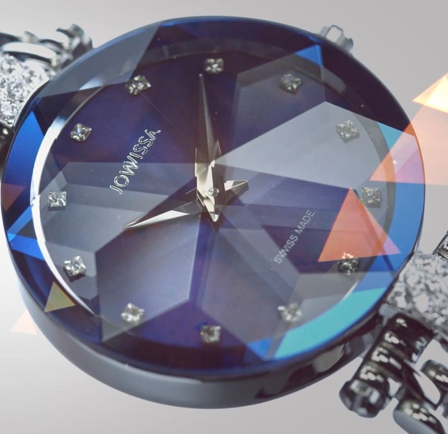 Montre Élégante Femme Suisse Bleu Foncé Verre Taillé Maille
