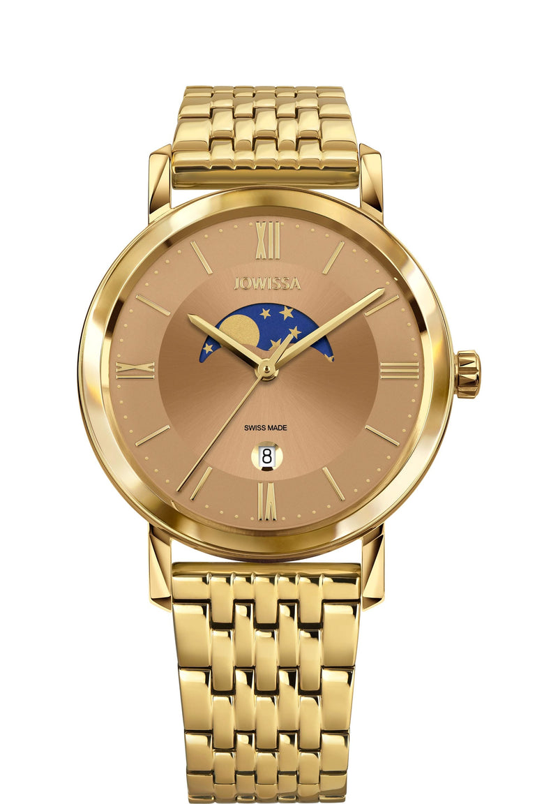 Montre analogique, Fabriqué en Suisse, Montre des phases de la lune, Affichage des phases de la lune, Mouvement à quartz, Affichage de la date, Bracelet interchangeable et Étanche