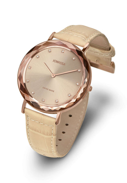 Waterproof, Quartz movement, Interchangeable strap, Swiss made, and Analogue wristwatch