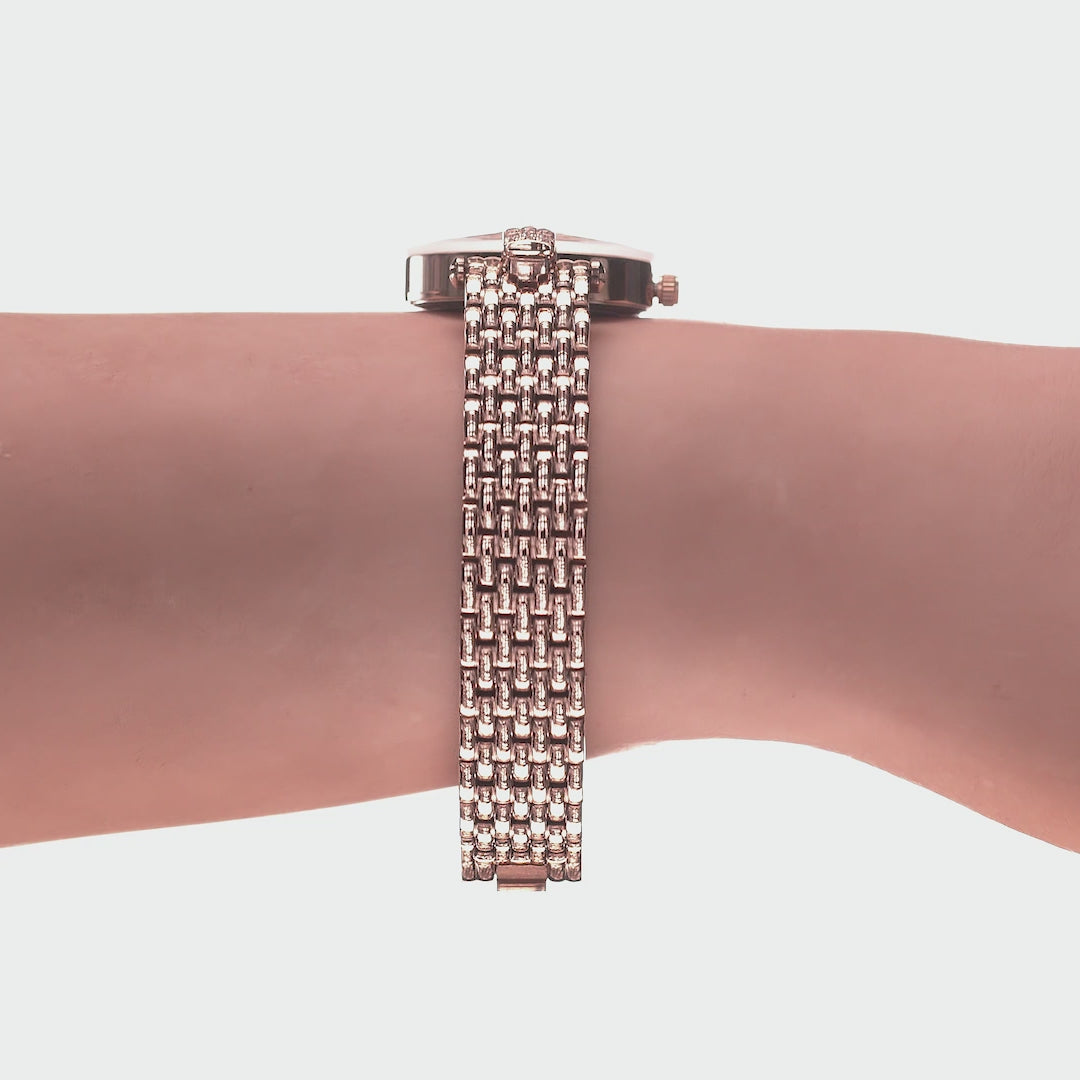 Rose Gold Mother of Pearl Women's Watch Diamond Cut Dial Milanese Band