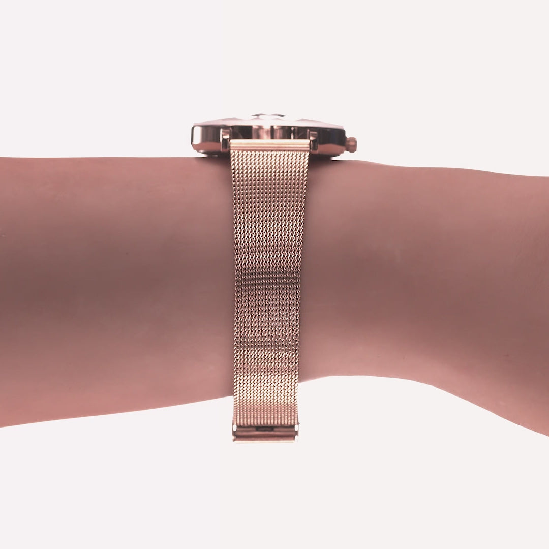 Sparkling White Face Ladies Jewelry Watch Rose Gold Mesh Bracelet 30mm