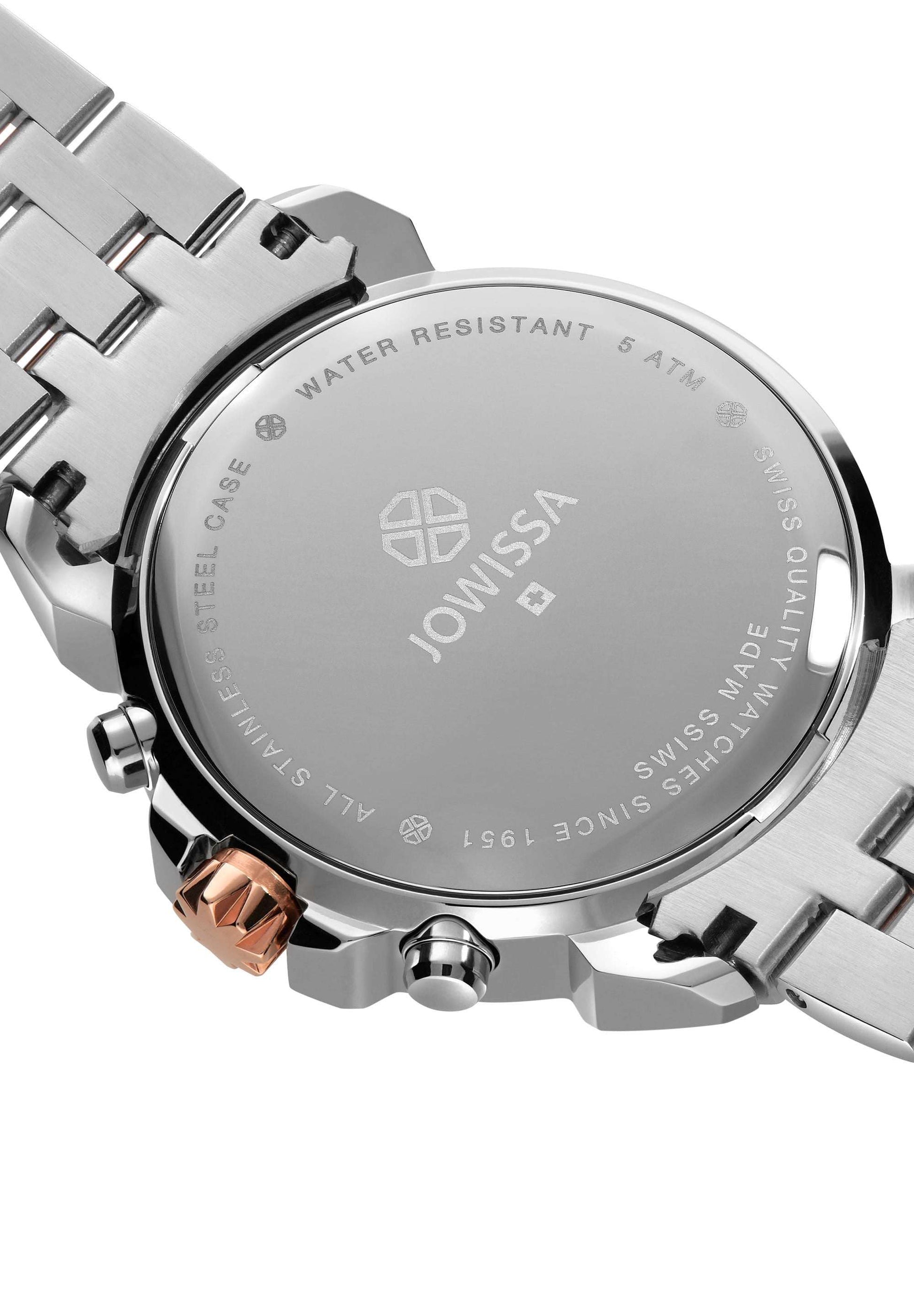 Waterproof, Quartz movement, Date display, Interchangeable strap, Swiss made, Analogue wristwatch, and Chronograph