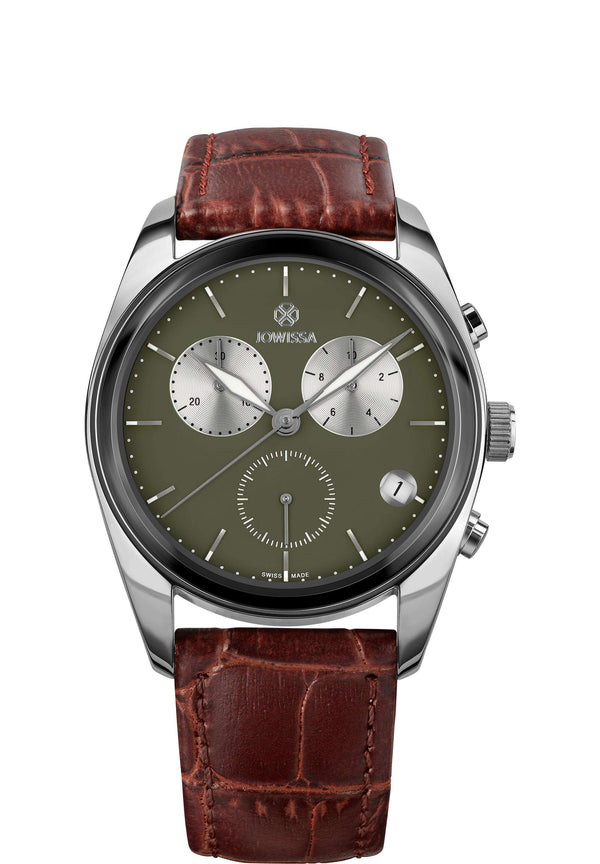 Waterproof, Tachymeter, Quartz movement, Date display, Interchangeable strap, Analogue wristwatch, Swiss made, Chronograph, Luminous markers, and Luminous hands
