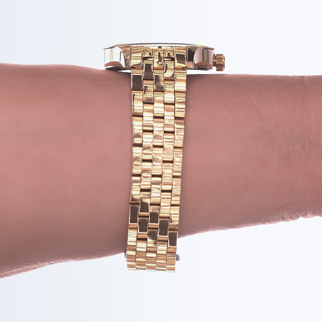 Follow a few simple steps to adjust the lengths of your stainless steel wrist watch bracelet. This particular band can be sized in two sequential ways; a rough- (A) and a fine adjustment (B).